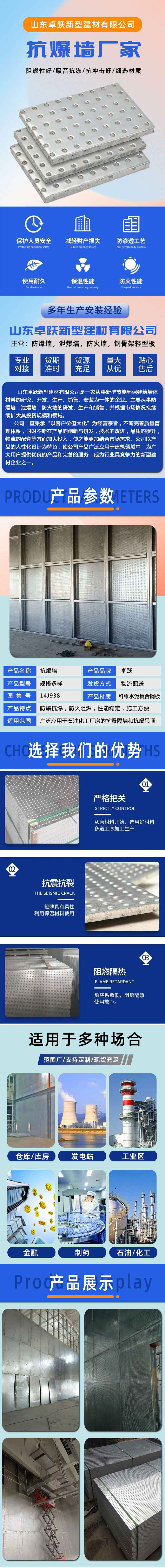 广饶厂房防爆墙抗爆墙施工 规格多样 抗爆压力值可达2000kpa